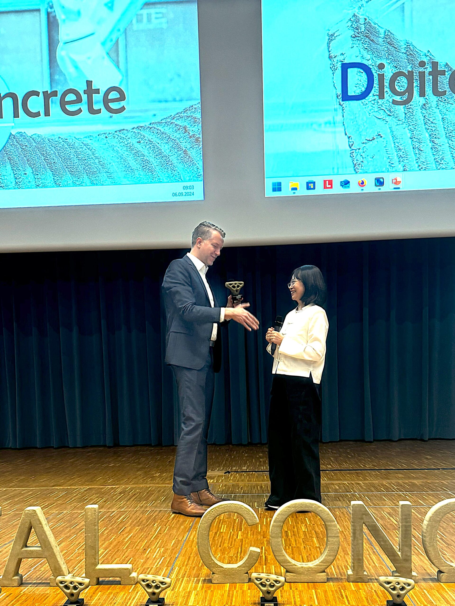 Dirk Lowke, Chair of Digital Concrete 2024, extended his heartfelt thanks to all attendees, presenters, and the organizing team for making the conference a tremendous success. “It has been an incredible journey, and I am thrilled by the energy and enthusiasm everyone brought to the event,” said Lowke. He handed over the baton to Yamei Zhang, who will chair the next Digital Concrete conference in Nanjing, China, in two years. “We’re excited to see how the Digital Concrete community continues to grow and thrive on a global stage.”