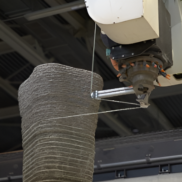 Within WG Hühne (A05), reinforcement structures are produced for integration into large additively manufactured components. A custom-built Dynamic Winding Machine (DWM) enables adaptive, on-demand production of fiber reinforcement strands. In cooperation with WG Hack, a holistic approach is pursued to produce structural components directly on-site by combining additive manufacturing with innovative reinforcement strategies: Core Winding, Frame Winding, and Pin-grid Winding.