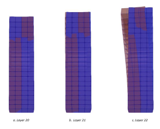 The current research focuses on two main areas. First, the actual printing path and possible imperfections are being analysed, and the prediction of sudden buckling due to these imperfections will be implemented in the FEM code. In addition, the implementation of reduced-order models is being investigated to enable fast prediction of the deformation state of printed structures.