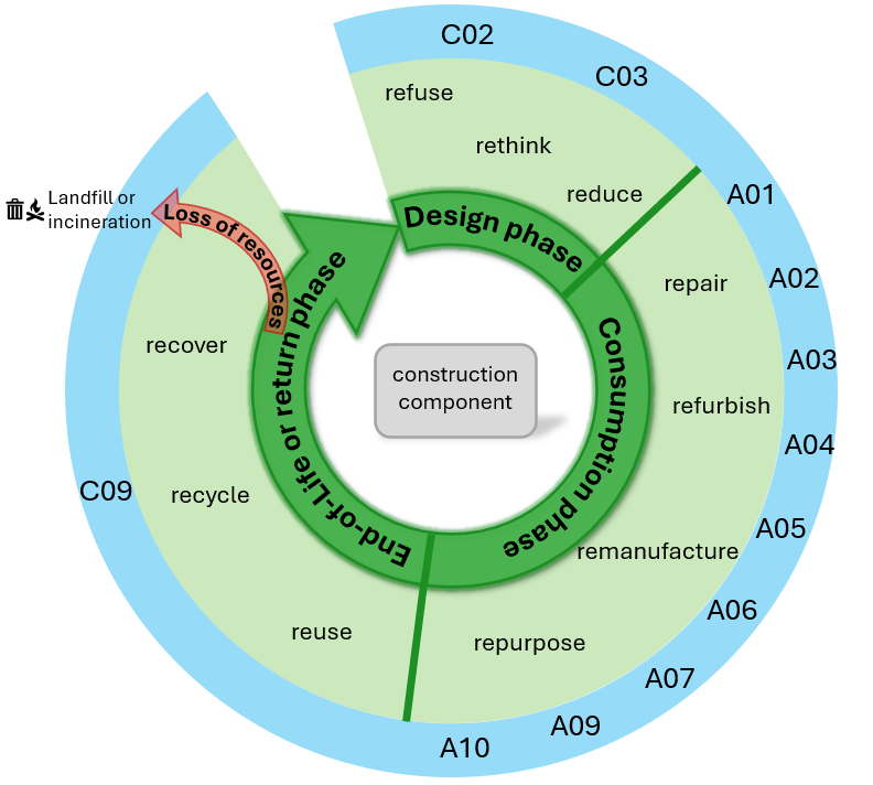 C09 aims to enhance the ecological sustainability of Additive Manufacturing in Construction (AMC) by quantifying and optimizing its environmental benefits through comprehensive Life Cycle Assessments (E-LCA) from cradle to cradle. This involves developing transparent Product Environmental Footprint Category Rules (PEFCR), identifying impactful reduction measures, and integrating circular design strategies to create durable, efficient, and reusable components. C09 enables early-stage, sustainability-focused decision-making, fostering material-efficient, low-impact construction practices and reducing the environmental footprint of the building sector.